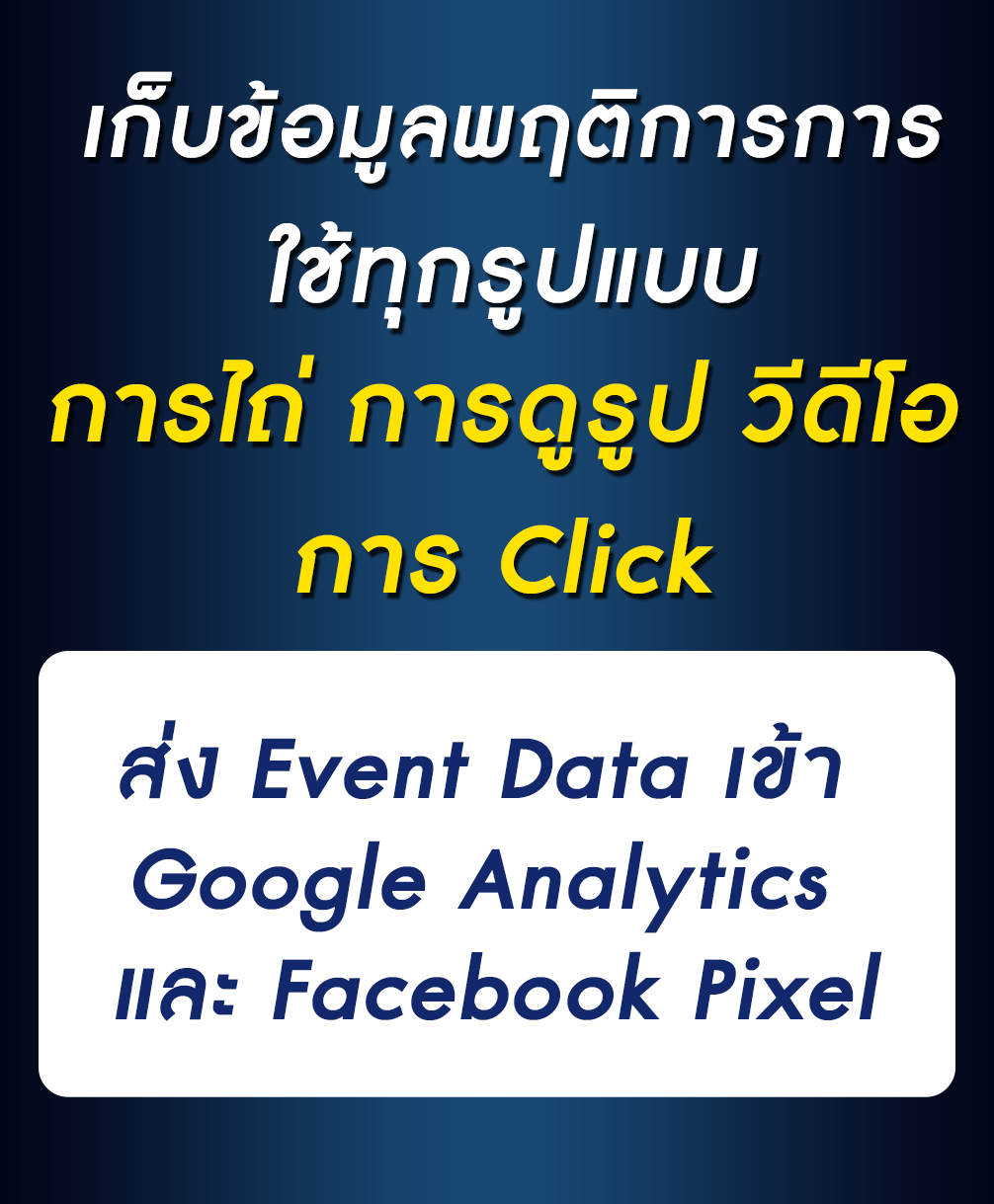 นอกจากนี้เว็บของเรา ยังมีการบันทึกพฤติกรรมการใช้งาน (Event Tracking) ของลูกค้าแบบละเอียด แบบอัตโนมัติ เช่น พฤติกรรมการเลื่อนดูเนื้อหา และข้อมูลอื่น ๆ และส่งข้อมูลไปยัง Google Analytics และ Facebook Pixel