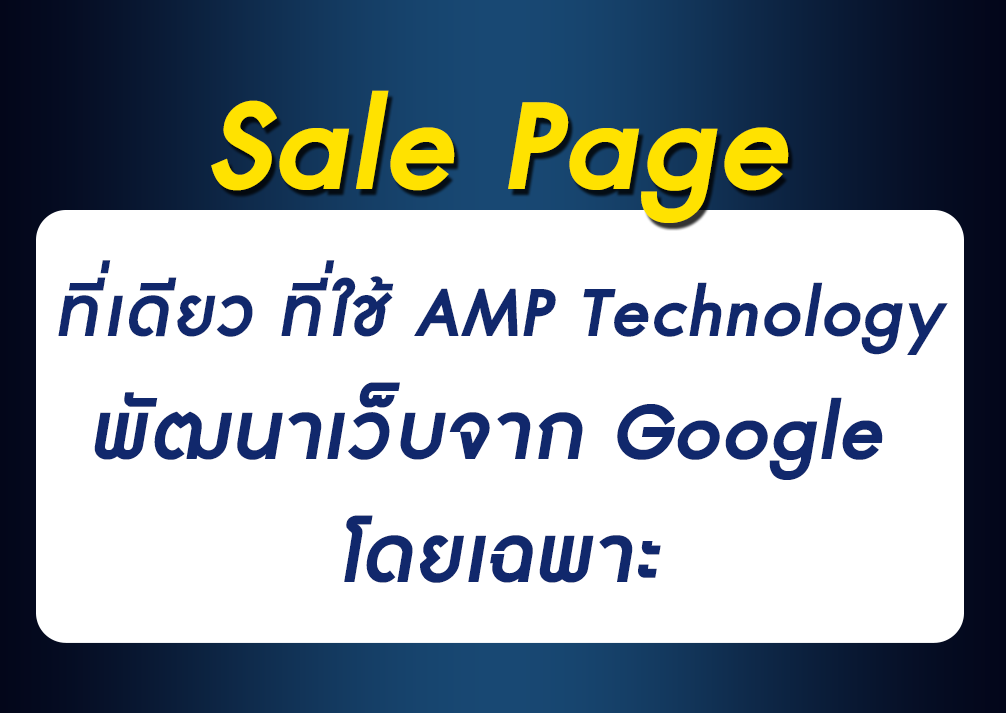 ระบบเว็บไซต์ และ Sales Page ที่เดียวในไทย ที่ใช้ AMP Technology เทคโนโลยีสร้างเว็บไซต์ที่พัฒนาโดย Google ซึ่งช่วยลด Load Time (ระยะเวลาในการโหลด) และทำให้แสดงผลหน้าเว็บให้รวดเร็วยิ่งขึ้น