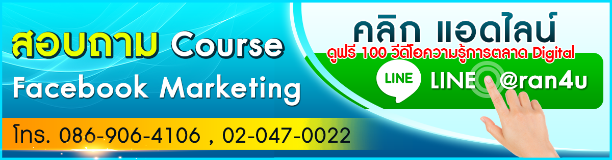 | ถ่ายทอด เทคนิค "ลับเฉพาะ" 5 สุดยอดเทคนิค การสร้าง Ads แบบลึกล้ำ!! เล่นกับการกำหนดเป้าหมายด้วย "ข้อมูลประชากร" และ "ความสนใจ" ของผู้ใช้ Facebook อย่างแยบยล สร้างการรับรู้แบบ "สะกดใจ" เฉพาะบุคคล ต้องหยุดดูโฆษณาของเรา แน่นอน!! |