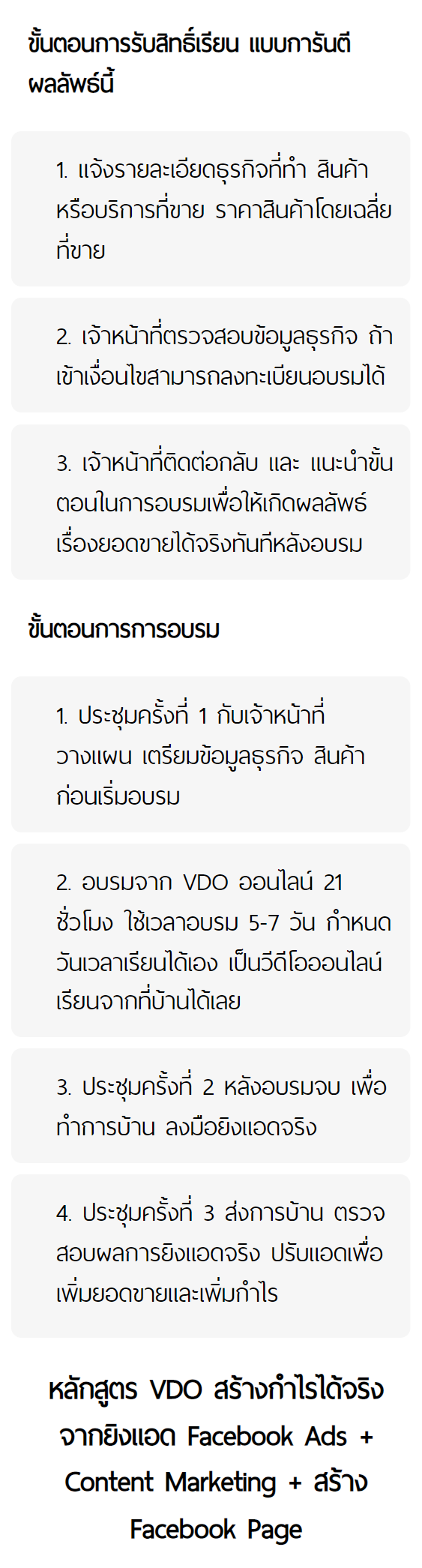 อบรม Facebook อบรม 3 วันเต็ม ผ่าน VDO ออนไลน์ เป้าหมายคือ ทำกำไรได้จริง ตรวจสอบ วัดผลได้ละเอียดที่สุด